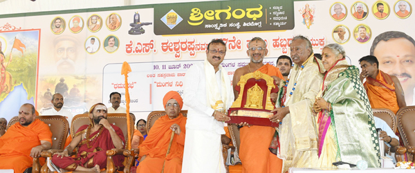 ಸಾನಿಧ್ಯವಹಿಸಿದ್ದ ಶ್ರೀ ಪೇಜಾವರ ಮಠದ ಶ್ರೀ ವಿಶ್ವಪ್ರಸನ್ನ ತೀರ್ಥ ಸ್ವಾಮಿಗಳು, ಶ್ರೀರಾಮ ತೋರಿದ ಆದರ್ಶಗಳನ್ನು ಕೆ.ಎಸ್. ಈಶ್ವರಪ್ಪ ಅವರು ತಮ್ಮ ಜೀವನದುದ್ದಕ್ಕೂ ಅಳವಡಿಸಿಕೊಂಡು ಬರುತ್ತಿದ್ದಾರೆ. ಇದು ಇಡೀ ಸಮಾಜಕ್ಕೆ ಮಾದರಿಯಾಗಿದೆ ಎಂದರು.
