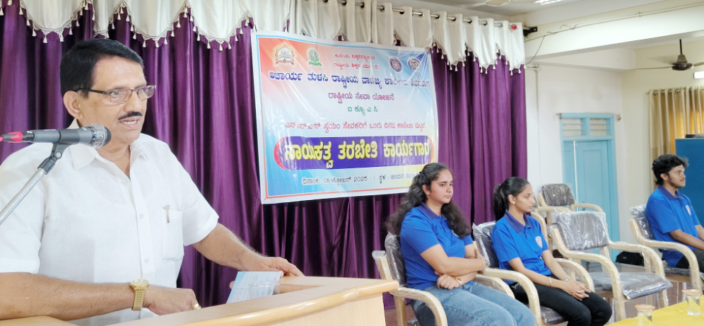ನಗರದ ಆಚಾರ್ಯ ತುಳಸಿ ರಾಷ್ಟ್ರೀಯ ವಾಣಿಜ್ಯ ಕಾಲೇಜಿನಲ್ಲಿ ಕುವೆಂಪು ವಿಶ್ವವಿದ್ಯಾಲಯ, ರಾಷ್ಟ್ರೀಯ ಶಿಕ್ಷಣ ಸಮಿತಿ ಹಾಗೂ ರಾಷ್ಟ್ರೀಯ ಸೇವಾ ಯೋಜನೆಯ ಸಂಯುಕ್ತಾಶ್ರಯದಲ್ಲಿ ಬುಧವಾರ ಏರ್ಪಡಿಸಿದ್ದ ನಾಯಕತ್ವ ತರಬೇತಿ ಕಾರ್ಯಾಗಾರದಲ್ಲಿ ‘ನಾಯಕತ್ವ ಕೌಶಲ್ಯಗಳು : ನಾಯಕ/ಕಿ ಎಂದರೆ ಯಾರು?’ ಎಂಬ ವಿಷಯದ ಕುರಿತು ವಿಶೇಷ ಉಪನ್ಯಾಸ ನೀಡಿದರು.