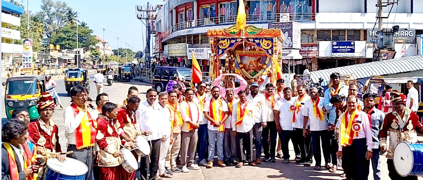 ಶಿವಮೊಗ್ಗ :- ದುರ್ಗಿಗುಡಿ ಕನ್ನಡ ಸಂಘದಿಂದ ಇಂದು ಶ್ರೀ ಭುವನೇಶ್ವರಿ ದೇವಿಯ ಅದ್ಧೂರಿ ಮೆರವಣಿಗೆಯು ರಾಮಣ್ಣ ಶ್ರೇಷ್ಠಿ ಪಾರ್ಕಿನಿಂದ ಹೊರಟು, ಗಾಂಧಿಬಜರ್ ಮಾರ್ಗವಾಗಿ ದುರ್ಗಿಗುಡಿಯಲ್ಲಿರುವ ವೀರ ಶಿವಪ್ಪನಾಯಕ ಭವ್ಯ ಮಂಟಪ ತಲುಪಿತು.